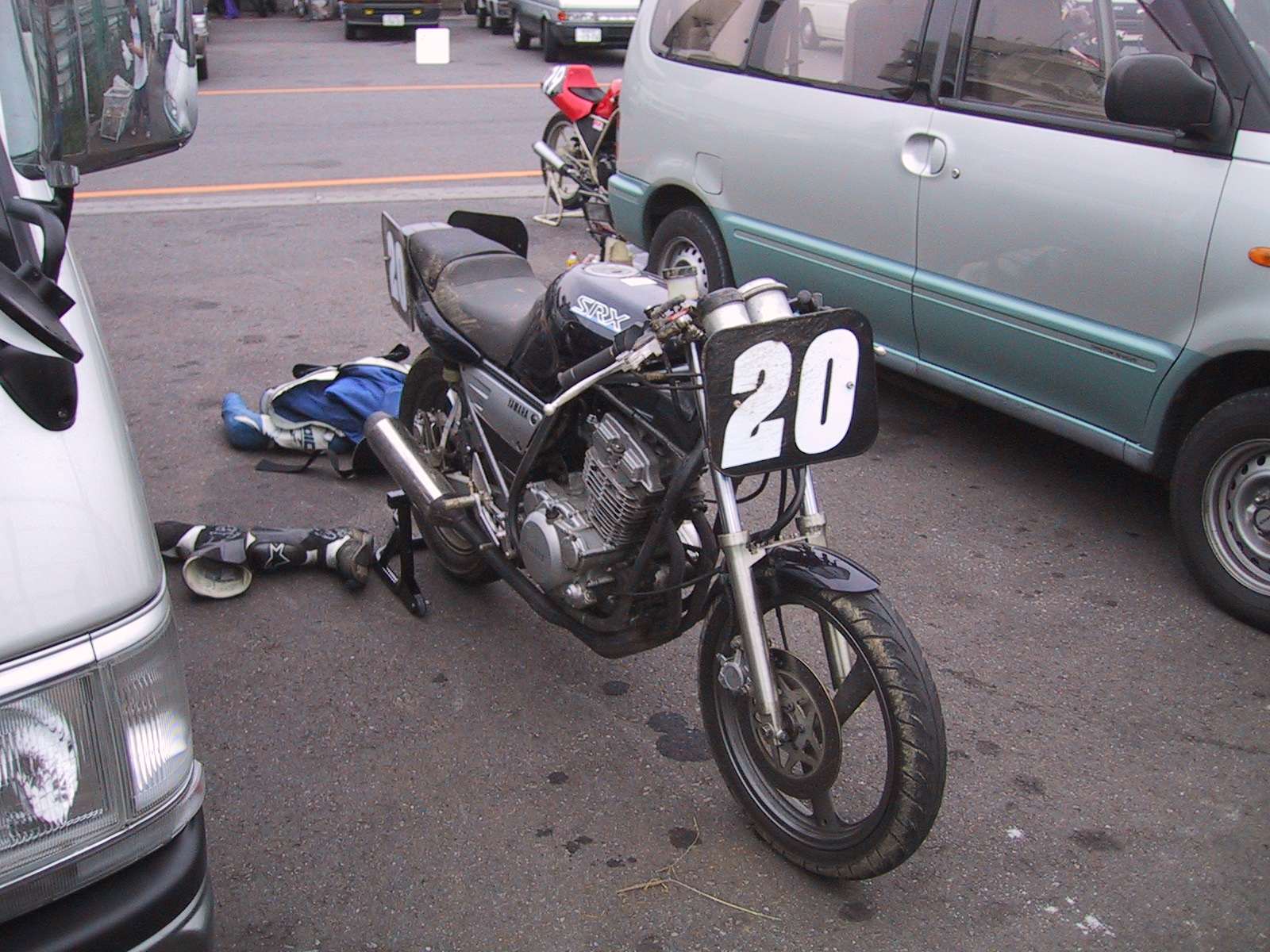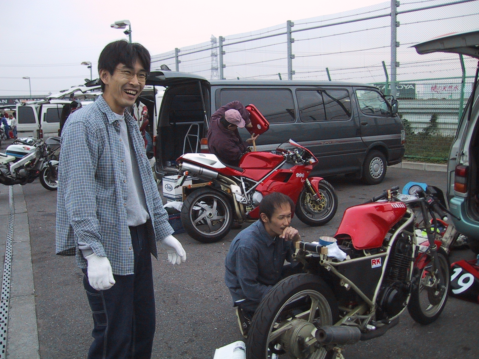 ‚Ȃɂâ‚çA”zü‚̃RƒlƒNƒ^[‚ªÚG•s—Ç‚ð‹N‚±‚µ‚Ä‚¢‚ÄA‚»‚±‚ª””M‚µ‚Ä‚¢‚½‚Ý‚½‚¢BƒeƒXƒ^[‚ðo‚µ‚ÄA“°’ʂ̃`ƒFƒbƒN‚ð‚µ‚½‚èAƒJƒvƒ‰[‚ðŠO‚µ‚Ä‘|œ‚µ‚½‚èAƒMƒ{ƒV‚ð•t‚¯’¼‚µ‚½‚è‚ÆA‚â‚Á‚ĉ½‚Æ‚©•œŠˆ‚µ‚½–Í—lB ‚»‚ñ‚ÈC—•—Œi‚ðŒ©Šw‚µ‚Ä‚¢‚邯A‚ ‚Á‚Æ‚¢‚¤‚܂ɑ–sŽžŠÔ‚ɂȂÁ‚Ä‚µ‚Ü‚Á‚½B ¡‰ñ‚ÍAŠÔ£—p‚É‚©‚肽ƒrƒfƒI‚ðŽØ‚è‚½‚܂܂ł¢‚½‚Ì‚ÅA‰Å‚ÉCX‚̃Xƒ^ƒ“ƒh‚©‚çŽB‰e‚µ‚Ä‚à‚炤‚±‚Ƃɂµ‚½B 8Žž30•ª L1 ‘–sŠJŽn 3”ԖڂɃR[ƒXƒCƒ“B‘O‚É‚ÍDUCATI996‚ª‚¢‚邪A‚±‚ꂪ‚Ü‚½’x‚¢...‚µ‚©‚à–³’ƒ‹ê’ƒƒtƒ‰ƒtƒ‰‚µ‚Ä‚¢‚éB ÅIƒR[ƒi[‚ð—§‚¿ã‚ª‚èAƒtƒ‹‰Á‘¬...8000rpm‚©‚çã‚ł̃mƒbƒLƒ“ƒO‚͂Ȃ‚È‚Á‚½‚¯‚ÇA‚¢‚Ü‚¢‚¿‰ñ“]‚ªd‚¢B9000rpm‚Å“ª‘Å‚¿...‚â‚Á‚Ï‚èƒWƒFƒbƒeƒBƒ“ƒO‚ª‚ ‚Á‚ĂȂ¢‚Ì‚©‚È‚Ÿ... 1ƒR[ƒi[i“üBƒŠƒAƒuƒŒ[ƒL‚ð“¥‚à‚¤‚Æ‚µ‚½‚çA‰E‘«‚Ì‚Â‚Üæ‚̓XƒJƒb‚Æ‹óU‚è....u‚¦‚Á???v ƒsƒbƒgƒCƒ“‚µ‚ăpƒhƒbƒN‚É–ß‚èAC—BƒuƒŒ[ƒLƒyƒ_ƒ‹‚ƃ}ƒXƒ^[ƒVƒŠƒ“ƒ_[‚ðŒq‚¢‚Å‚¢‚éƒ{ƒ‹ƒg‚ª’E—Ž‚µ‚Ä‚¢‚½BÅŒã‚Ƀ}ƒXƒ^[ƒVƒŠƒ“ƒ_[‚ðŒðŠ·‚µ‚½Û‚ÉAƒ{ƒ‹ƒg‚ðƒ}ƒV’÷‚ß‚·‚é‚Ì‚ð–Y‚ê‚Ä‚¢‚½‚炵‚¢B‘Ê–ÚƒWƒƒƒ“A‰´... C—‚ªI‚í‚Á‚½‚Æ‚±‚ë‚ÅAÄ“xAƒR[ƒXƒCƒ“B