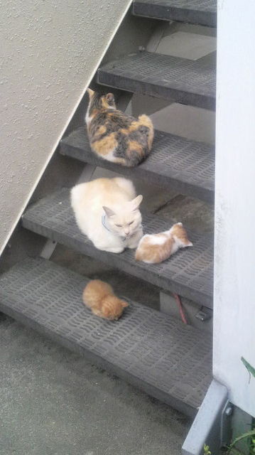 ゴールデンウィーク明けくらいに写真の真ん中にいるママ猫が出産しました。