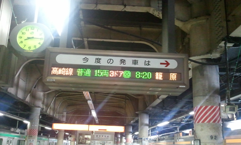一番端の京浜東北線のホームから高崎線の停まっている15番ホームまで人混みを潜り抜け、なんとか間に合いました。