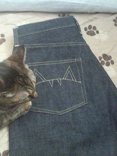 「う〜〜ん、欲しいなぁ〜〜」って、ディスプレイ越しに悶えていたところに、取って置きの生地を使ってジーンズを作るという記事がアップされました。