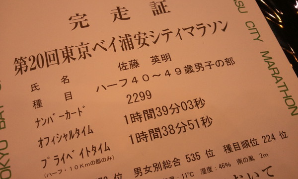 第20回東京ベイシティ浦安マラソンのハーフマラソンの部に参加してきました。